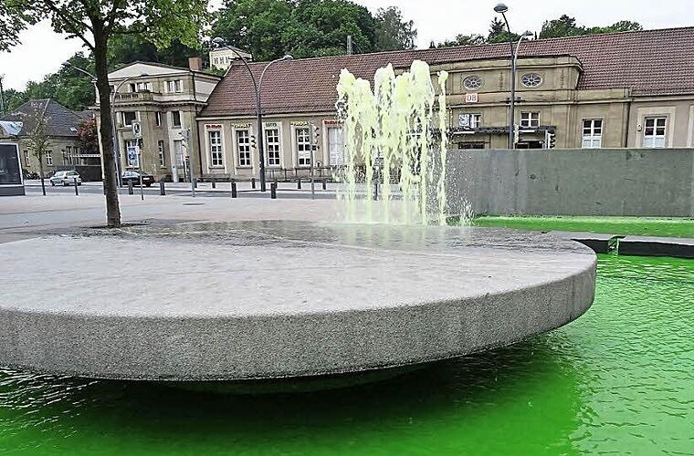 Der Brunnen am Markt wird nämlich von den SÜC betreut, weil dort Trinkwasser aus dem Hahn fließt. Aber Trinkwasser, das sich mit einer giftgrünen Plörre mischt? "Das sah ziemlich unappetitlich aus", sagt Lendner. So konnte es nicht bleiben, und den Passanten gefiel es auch nicht, wie er sagt. Deshalb ließ Lendner noch am Samstag den Brunnen reinigen und neu befüllen.