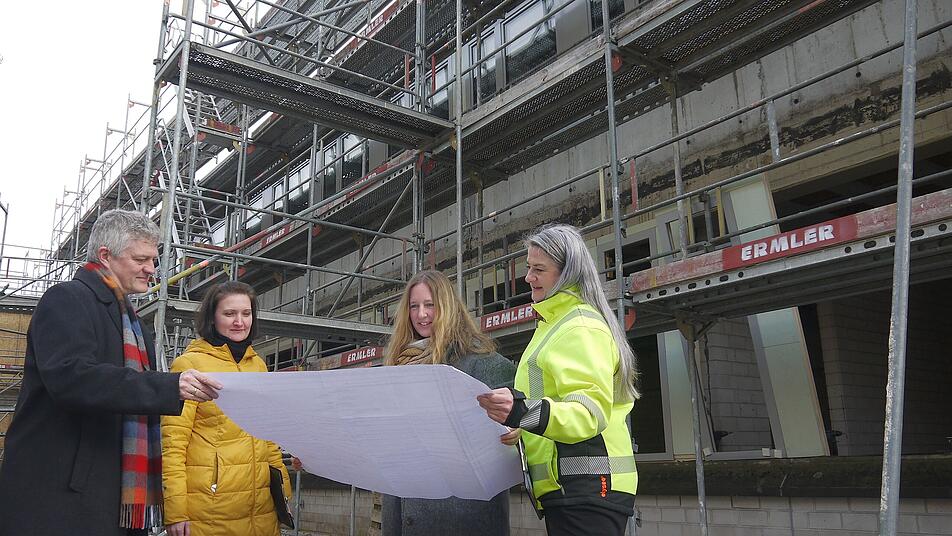 Auf die Frage nach der grundsätzlichen Bewertung des bisherigen Verlaufs kommt allseits ein zufriedenes Nicken. Das ist nicht selbstverständlich in der Zeit nach Corona und mitten im Ukraine-Krieg. Andrea Aust kann freilich von Problemen bei der Materialversorgung berichten: Rauchmelder und Schutzschalter, für ein Millionenprojekt eher in der Rubrik „Kleinzeug“ angesiedelt, waren zuletzt nicht lieferbar. Aber groß aufgehalten haben diese Probleme das Gesamtprojekt bislang nicht. Derzeit laufen der Einbau der neuen Holzfenster sowie die Installation der Heizung und der Sanitäranlagen. Bei wichtigen Bauteilen wie der Lüftungsanlage und Fliesen geht der Landkreis auf Nummer sicher: Sie sind bereits angeschafft und werden zwischengelagert, bis sie auf der Baustelle gebraucht werden.