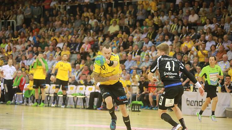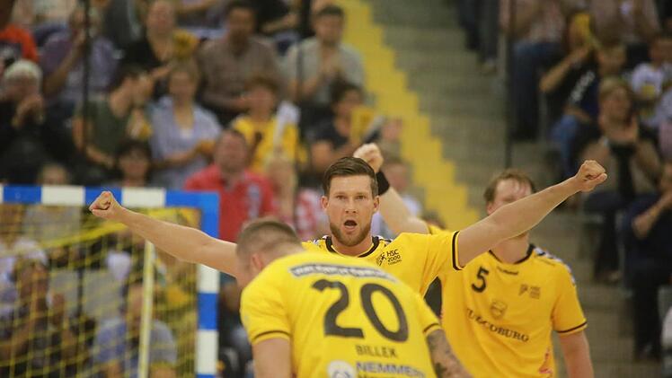 Fast fünf Minuten mussten die Zuschauer in der ausverkauften Halle auf den ersten Treffer der Partie warten, Chancen hatten beide Teams, doch die Abwehrreihen präsentierten sich erst einmal als Bollwerk, ehe Florian Billek mit etwas Glück, weil der Ball von der Latte dem TW in den Rücken sprang, traf.