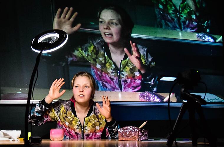 Landestheater Coburg "Goldzombies" von Marisa Wendt, Klassenzimmerstück. Inszenierung Marten Straßenberg, Theaterpädagogik/Dramaturgie Christin Schmidt. Darstellerin: Solvejg Schomers.- Das Klassenzimmerstück dieser Saison ist geeignet für Jugendliche ab 12 Jahren. Bei Interesse können sich Schulen für Buchungsanfragen und Begleitmaterial an die Theaterpädagogin Christin Schmidt wenden: christin.schmidt@landestheater.coburg.de, oder per Telefon 09561/89 89 97.
