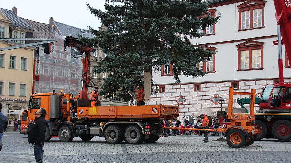 Alle Jahre wieder und immer wieder aufs Neue ein besonderer Moment: die Aufstellung des Weihnachtsbaums auf dem Coburger Marktplatz. Das heißt, der Weihnachtsmarkt steht vor der Tür und damit auch bald Weihnachten.