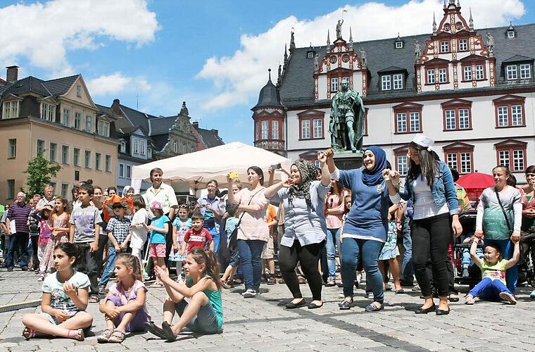 An den Info- und Aktionsständen herrscht reges Treiben. Es wird gespielt, gemalt, diskutiert. Schirmherr Ulrich Eberhardt ist begeistert. "Integration wird eines der wichtigsten Themen in den kommenden Jahren. Ab 2020 sind wir hier in Coburg extrem auf Zuwanderer als Facharbeiter angewiesen. Dieses Fest als Auftakt zur Internationalen Woche bietet genau die Willkommenskultur, die wir brauchen." Gerne habe auch er Brücken gebaut. Eine davon ist eine Begehung der "Stolpersteine" zusammen mit der muslimischen Gemeinde. Eingeladen dazu ist jeder. Sie startet morgen, Dienstag, um 18 Uhr am Albertsplatz.