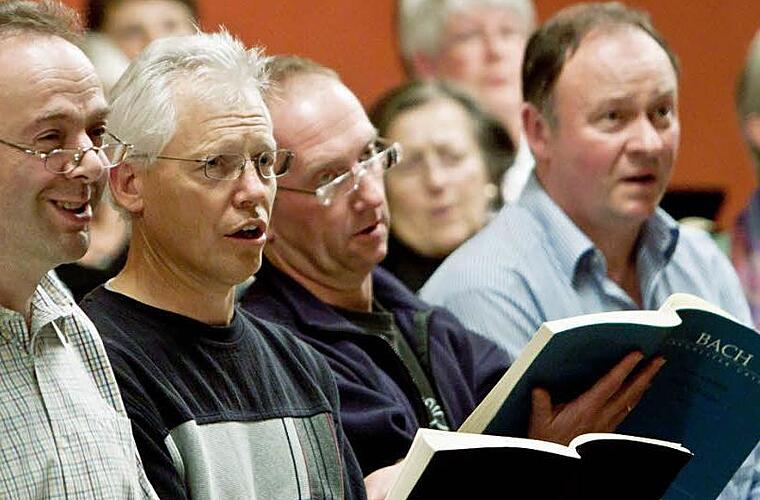 An diesem Probenabend darf der Coburger Bachchor ein wenig Anlauf nehmen. Bevor er das heikle Kyrie singt, mit dem Bach seine h-Moll-Messe eröffnet steht ein ruhig fließender Dankgesang auf dem Plan: "Gratias agimus tibi" (Wir sagen dir Dank um deiner großen Ehre willen). "Der Alt muss präsenter sein", wünscht sich Chorleiter Peter Stenglein und liefert auch gleich noch die Begründung nach: "Dann fängt das Stück zu strahlen an."