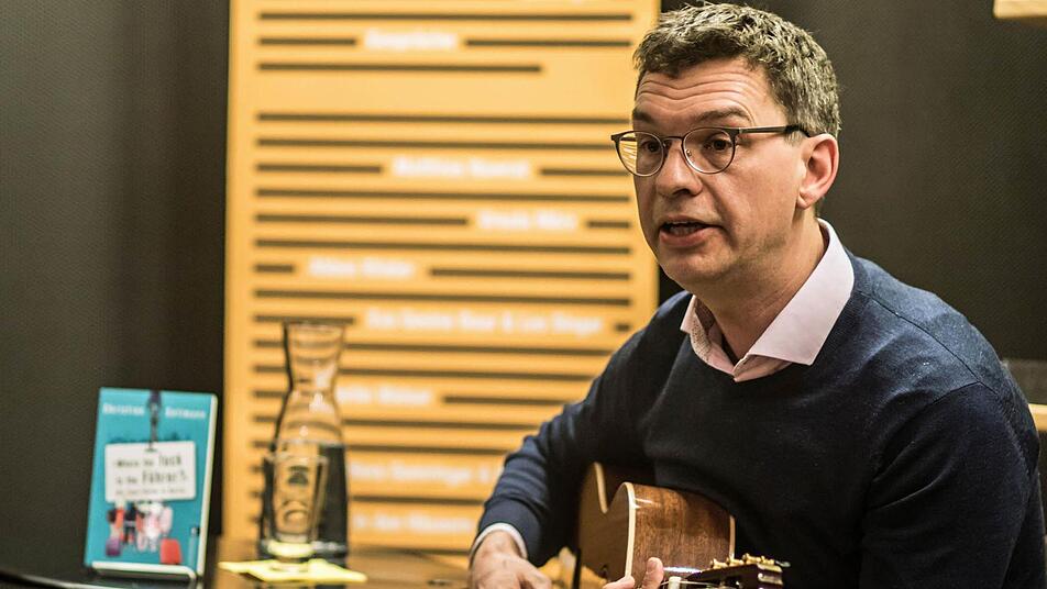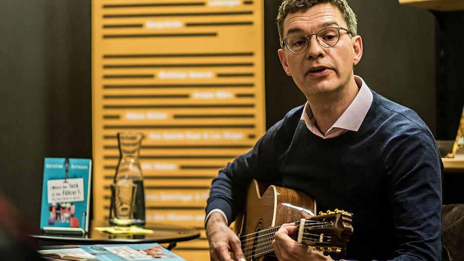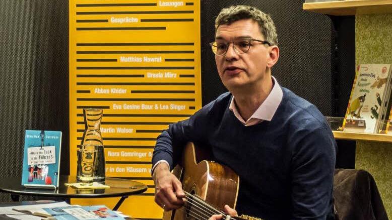 Seine Berlin-Lesung bereichert er noch um einige Lieder, die er zur eigenen Gitarrenbeleitung anstimmt - darunter Reinhard Meys "Mein Berlin".