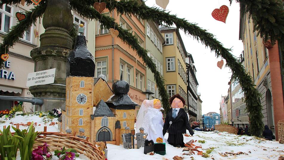 Bewundert wurden aber auch die städtischen Brunnen, die - wie in jedem Jahr - von verschiedenen Schulen geschmückt wurden. Das Motto lautete heuer "Liebespaare" und soll schon einen Vorgeschmack auf das Albert-Jubiläumsjahr 2019 geben. Prinz Albert ist es auch, der zusammen mit seiner Queen Victoria in eisiger Kälte auf dem Brunnen am Markt ausharrt und dem Treiben rundrum trotzt. Sein Blick fällt auf die Studierenden der Hochschule, die ihren "Pink Panther" von Cat Racing präsentieren. Der kleine Flitzer sieht aus wie die Mini-Ausgabe eines großen Formel-Eins-Rennautos und wurde von rund 60 Studenten entwickelt. "Wie schnell fährt der eigentlich?", will der kleine Steve wissen. "140 Stundenkilometer macht der schon", geben die jungen Entwickler stolz Auskunft.