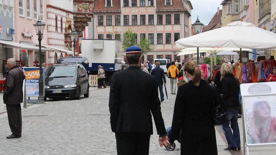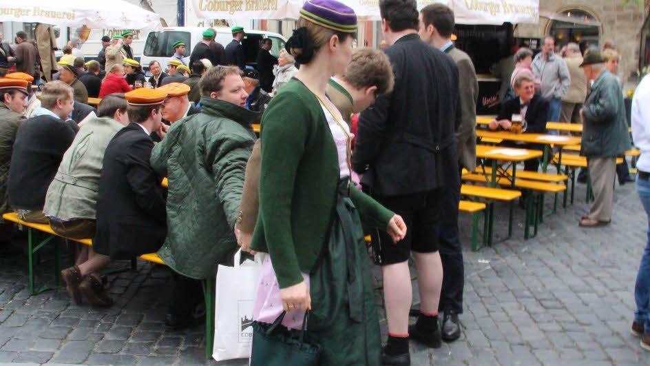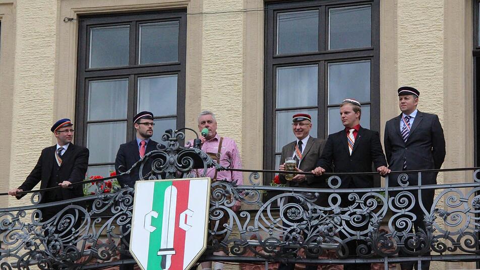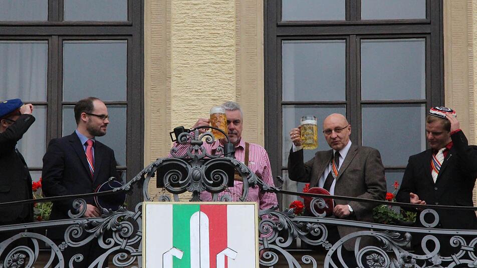 Ansonsten verläuft das Marktfest wie immer: Die Stadtkapelle spielt die bestellten Lieder und Märsche, auf dem Rathausbalkon drängen sich Besucher, die das Fest von oben sehen wollen. Und um 12 Uhr singen Alte Herren aus Coburg zu Ehren des längst verstorbenen Eux Stocke ein Ständchen am Albert-Denkmal.