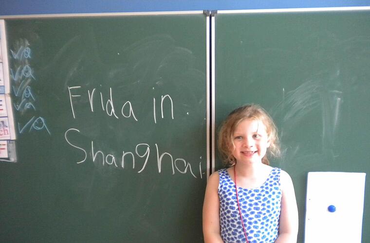Morgens um 7 durch Shanghai Da kommt Frida von ihrem "Playdate" mit Sophie. Die Sechsjährige besucht mittlerweile die deutsch-französische Schule in Shanghai. Sie geht in die erste Klasse. Morgens um 7 steigt sie in den Shuttlebus zur Schule - 40 Minuten durch Shanghai - um 15.30 Uhr kommt sie wieder heim. Dann wird gespielt. Ihre Freundinnen kommen aus aller Welt. Zur Zeit rennt sie aber am liebsten mit Momo aus Berlin um den Block.