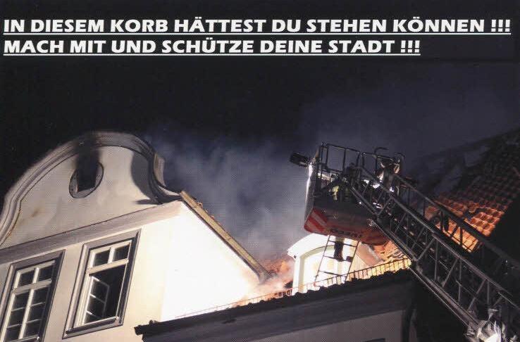 Helfen statt gaffen Mit einer gezielten Postkartenaktion appelliert die Coburger Feuerwehr an das Gewissen der Bürger und wirbt um neue Mitglieder. "Die vielen Schaulustigen beim Brand in der Herrngasse haben uns auf die Idee gebracht", sagt Christoph Weichler. Statt zu gucken, könnte der eine oder andere durchaus mithelfen, wenn er dafür ausgebildet wäre. Deshalb lautet die Aussage auf dem Bild auch: "In diesem Korb hättest Du stehen können! Mach mit und schütze Deine Stadt!"