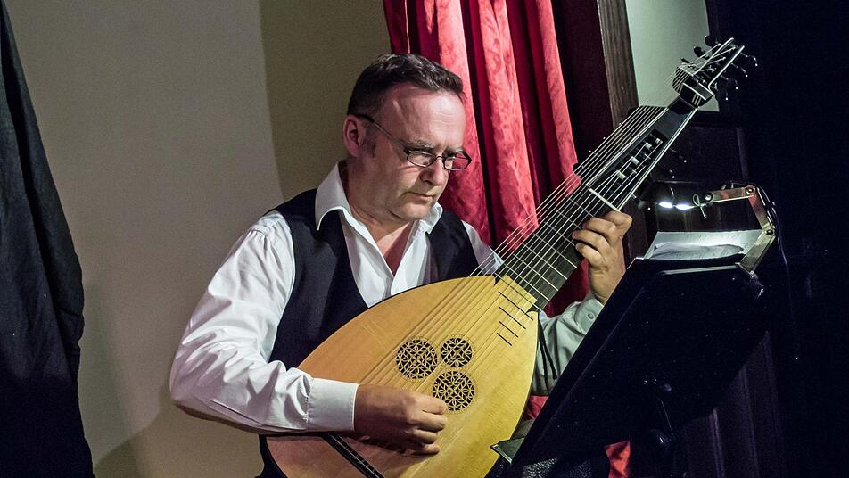Wichtiger Bestandteil der Inszenierung ist die Musik. Heiko Schmiedel spielt auf der Laute Werke aus Renaissance und Barock sehr einfühlsam und begleitet Ulrike Barz-Murauer bei Liedern von Dowland, Luther, Krieger und Purcell.