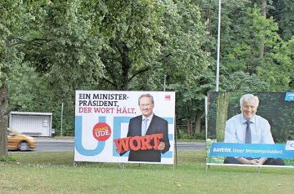 Die CSU hat das Plakatieren auf ihre Ortsverbände übertragen. Zusätzlich hat Michelbach "Wesselmänner", Großplakate, gemietet, auf denen er mit Angela Merkel zu sehen ist.