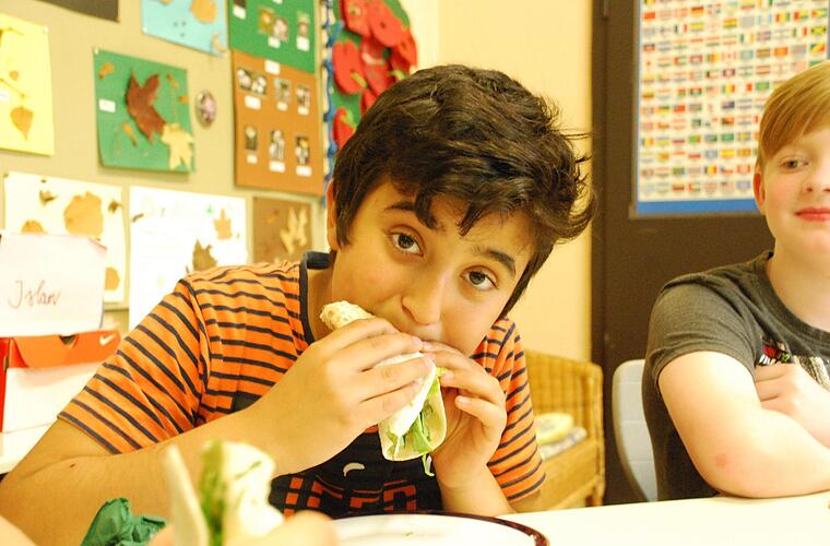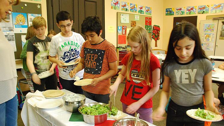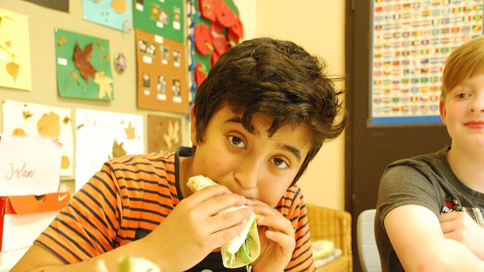 Derweil erklärt Marianne Rebelein den Kindern, wie sie den Wrap bestreichen, füllen und falten müssen, damit sie ihn dann auch handlich genießen können. Förderlehrerin Petra Kollmann, die sich in der Klasse um die 60 Prozent der Kinder mit Migrationshintergrund kümmert, ist begeistert von dem Programm: "Die Kinder kommen durch solche Aktion miteinander ins Gespräch. Sie lernen Deutsch ohne großen Aufwand. Und, ganz wichtig: Sie machen einfach mit - ohne das Gefühl Defizite zu haben!"