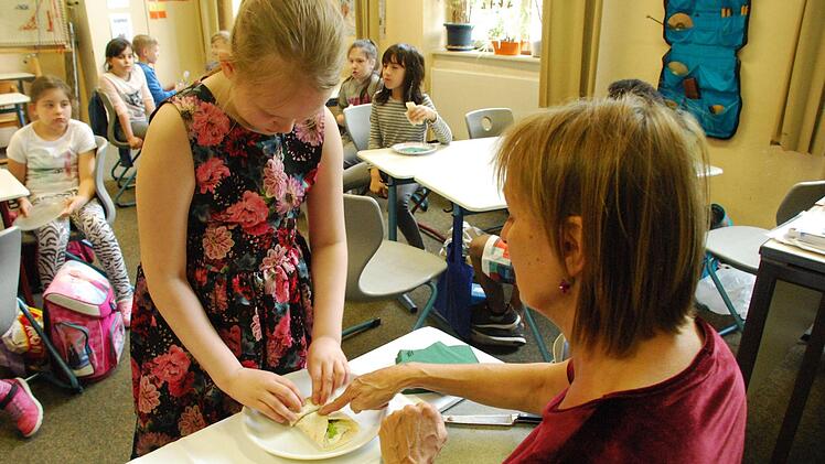 Gudrun Möckl und Marianne Rebelein haben die 23 Schüler der Lutherschule an dem Programm "Wrap'n Roll im Klassenzimmer" teilgenommen. Für ihren Klassenlehrer Wolfgang Geiß "eine super Sache", denn Ernährung spielt in der Schule eine wichtige Rolle. So wird die Klasse auch einmal die Woche mit Früchten und verschiedenen Gemüsesorten beliefert, die die Kinder vor der ersten Pause essen können. "Wir nehmen am Schulfruchtprogramm teil, das von der EU gefördert wird", erläutert Geiß.