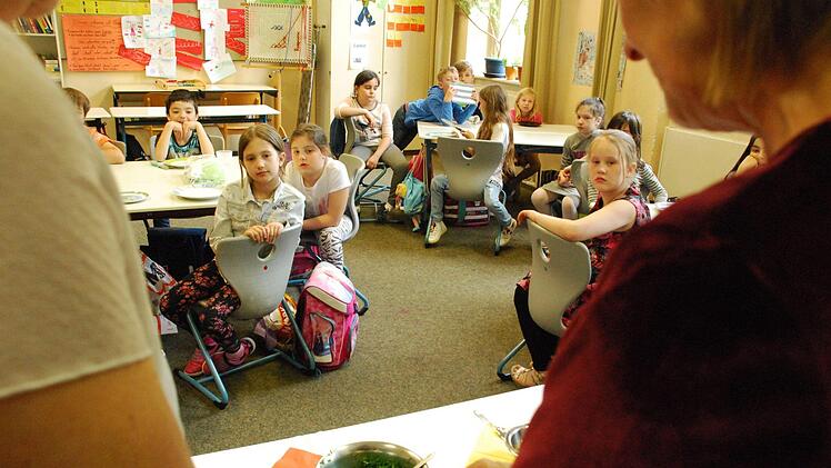 Sophia möchte erklären, was alles in dem Dip drin ist: "Also Quark, Milch, Frischkäse und natürlich Schnittlauch." Übrigens, als der beste Schnittlauchschneider an diesem Morgen entpuppt sich Klassenlehrer Geiß. "Das hat er ganz super gemacht", lobt ihn Marianne Rebelein. Wie frisch er ist, riecht man förmlich im ganzen Klassenzimmer. "Er beißt richtig in den Augen", muss Gudrun Möckl feststellen.