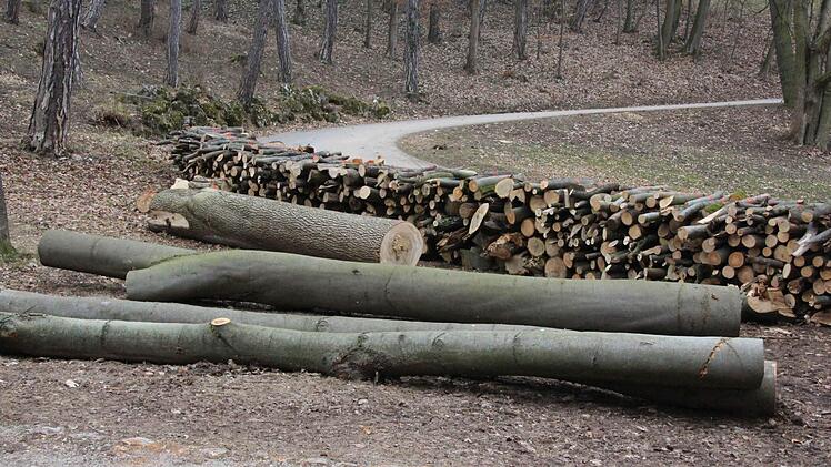 Totholzangebot Rund 125 Raummeter Brennholz holten die Forstleute der Stadt aus dem Hofgarten - das ist in etwa die Menge, die in einem Jahr in zehn Hektar Wald nachwächst. Doch so groß sind die Waldbereiche des 30 Hektar gorßen Hofgartens gar nicht. Und sie sind - zumindest direkt unterhalb der Veste - als Flora-Fauna-Habitat (FFH) ausgewiesen. Das bedeutet: Hier wird nicht alles raus- und ausgeräumt. "Totholzangebot", sagt Ledermann - "oder Lebensraumangebot, wenn das besser klingt". So viel zur Romantik. Ein anderer Teil des Holzes wurde verhäckselt, ein weiterer zu Brennholz zersägt und am Kiefernwäldchen aufgestapelt.