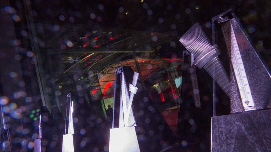 Drei Fugen aus Bachs "Kunst der Fuge" und der (ursprünglich nicht zur Sammlung gehörige) Choral schweben beinahe schwerelos und in Streichquartett-Besetzung wunderbar transparent gespielt von der ersten Etage herab ins Foyer. Dazwischen wird eines der bekanntesten Werke des amerikanischen Musik-Pioniers Charles Ives regelrecht zum Licht- und Klangereignis: "The Unanswered Question". Hannes Krämer dirigiert die drei Instrumentengruppen, die - wie vom Komponisten gewünscht - in diesem Fall tatsächlich räumlich voneinander getrennt musizieren: Streicher, Holzbläser und die einsame Solotrompete, die ihre unbeantwortete Frage von der zweiten Etage herab erklingen lässt.