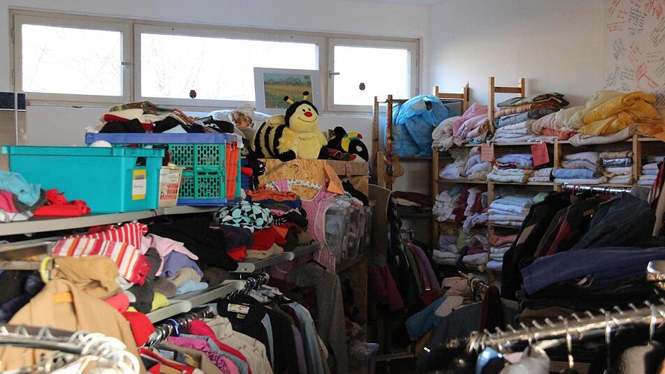 "Wir kriegen alles von Kik bis Bogner", erzählt Barbara Kammerscheid, während sie Wolfgang Weiler in den Keller lotst, wo noch die letzte Lieferung lagert: Rund 100 Säcke und über 50 Kartons mit Kleidung und Hausrat.