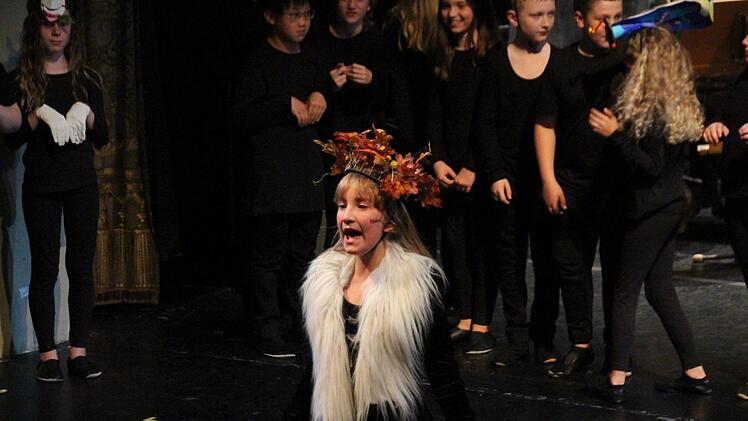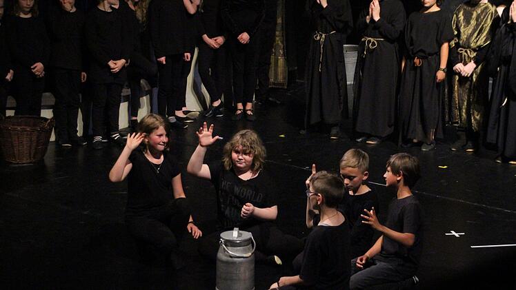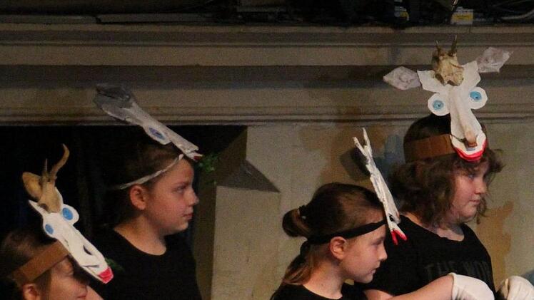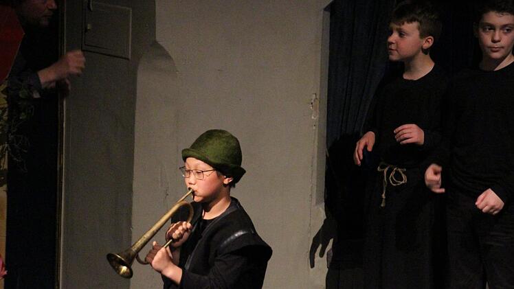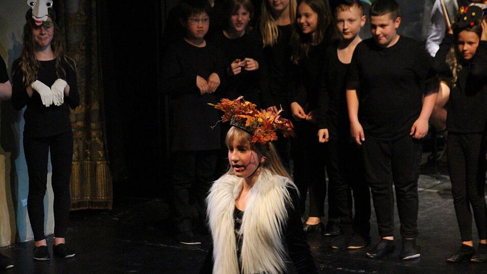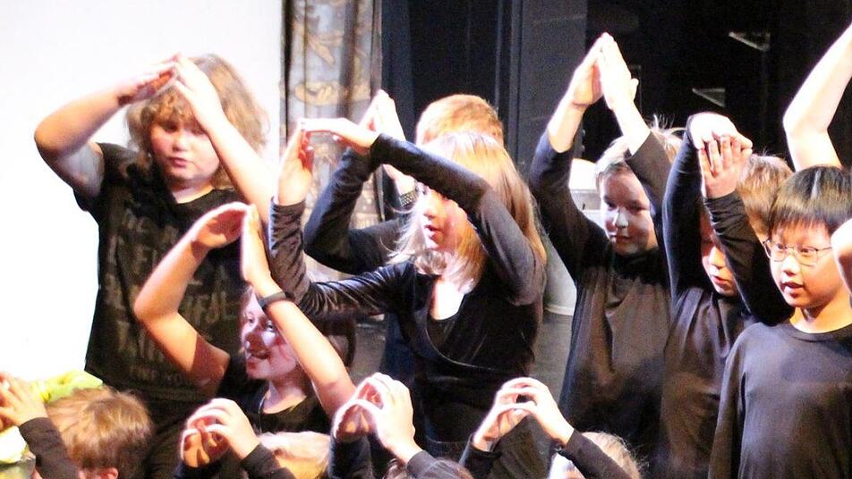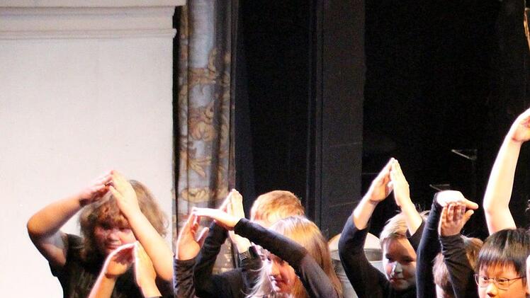Die Dritt- und Viertklässler waren in den letzten beiden Projektwochen von zwei Leipziger Musikpädagogikstudenten, Sören Schrader und Carmen Schmidt, in die Welt des (Coburger) Theaters und von Ayres fantastischem Musiktraum geführt worden. Dort entwickelten sie fantasievolle Spielszenen samt Ausstattung, gehaltvolle, berührende Texte, die dann ohne den Druck der Aufführung zum Geschehen auf der Bühne vom Band kamen, und musikalische Klanggemälde.