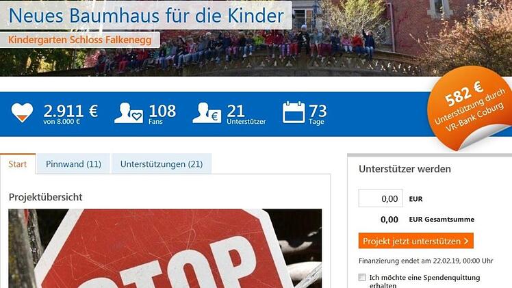 Aktuell läuft bei der VR Bank Coburg noch bis 22. Februar die Aktion "Neues Baumhaus für Coburg". Knapp 3000 Euro sind bereits eingegangen. 25 Prozent der Gesamtspendensumme werden von der VR Bank "oben drauf gelegt". Sollte das Spendenziel nicht erreicht werden, gehen alle Spenden zurück an die Absender. Für alles, was über den 8000 Euro liegt, zahlt die Bank keine 25 Prozent.