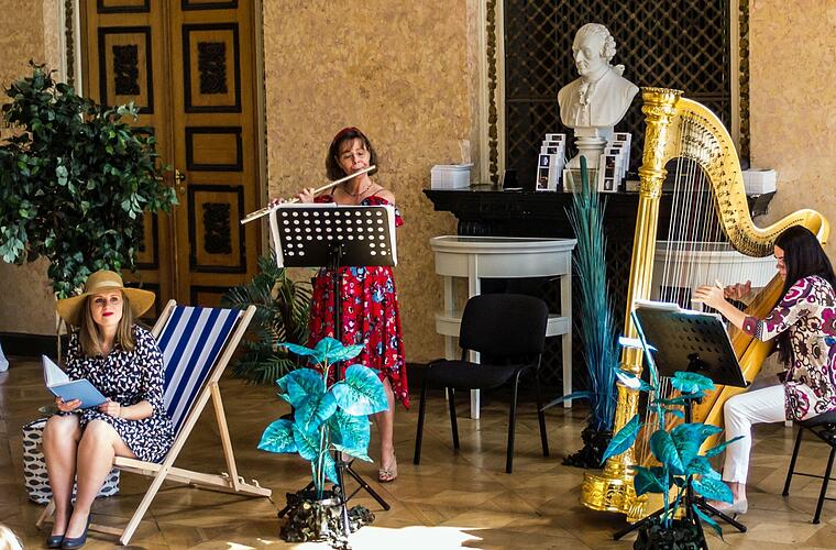 Unter dem Motto "Von Meerjungfrauen, Wassermännern und Meer" erklangen Werke Gabriel Fauré, Antonín Dvorák, Camille Saint-Saëns, Claude Debussy und anderen. Gestaltet wurde das Konzert von der Flötistin Angelika Stirner-Ebert, der Harfenistin Melanie Alban und Katharina Malur als Erzählerin.