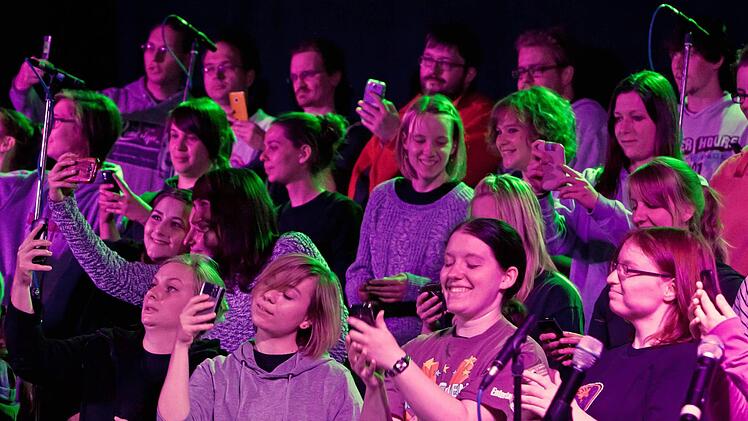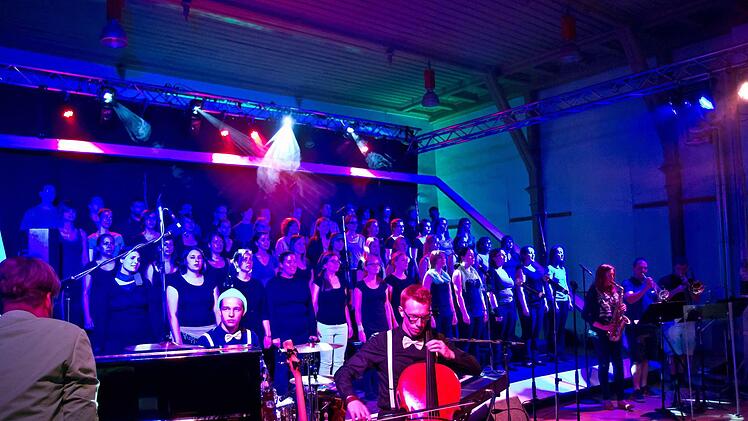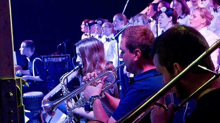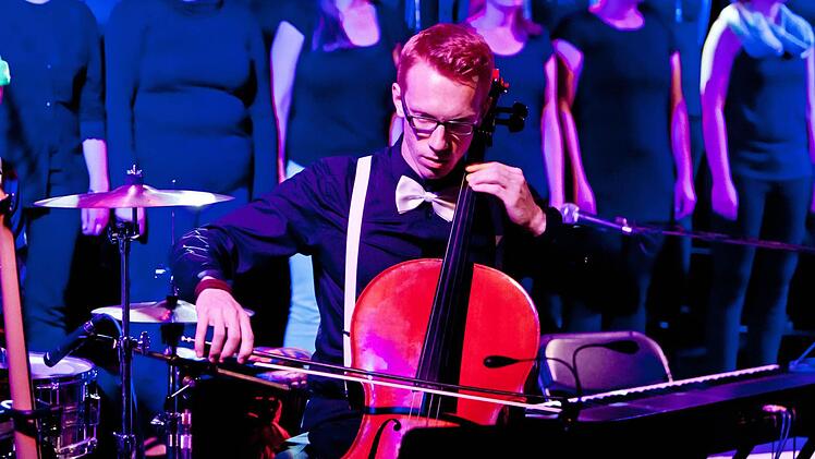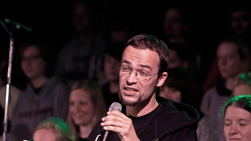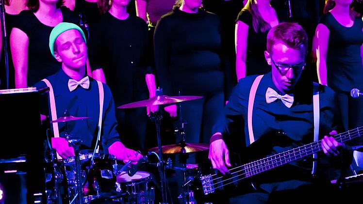 Vom Klavier aus setzt er die Akzente, bei Bedarf von Schlagzeug und Cello oder E-Gitarre unterstützt, formt mit wenigen, aber intensiven Gesten den Klang. Beeindruckend zu erleben, dass der Hochschulchor nicht nur im Pop-Metier zuhause ist, sondern auch einen romantischen A-cappella-Satz bestens bewältigt.