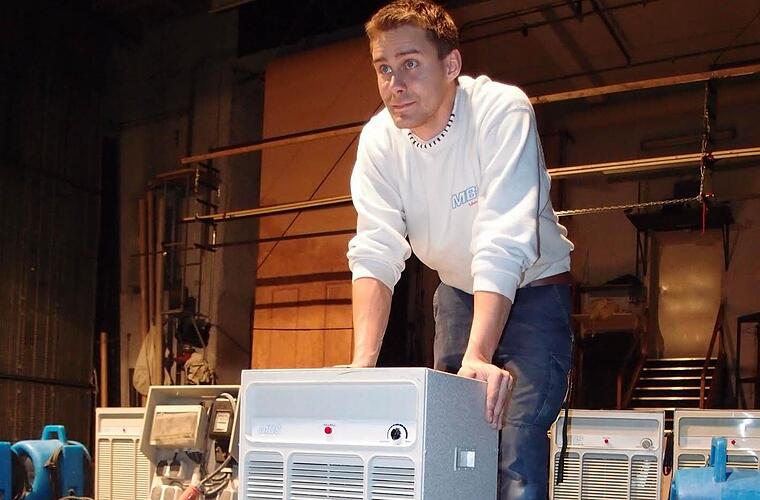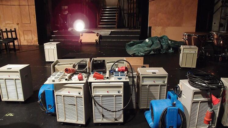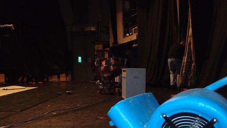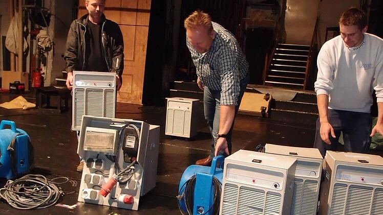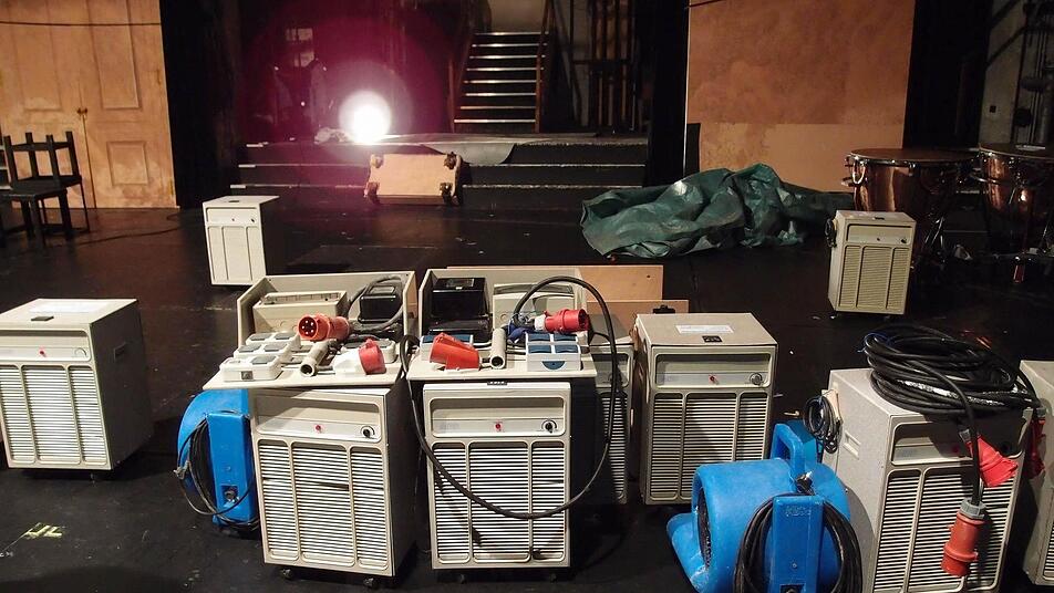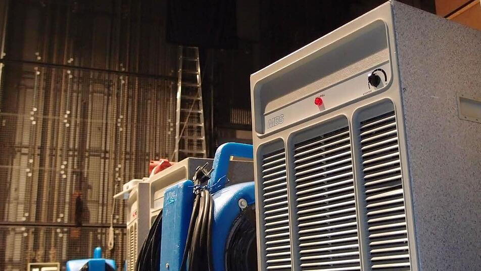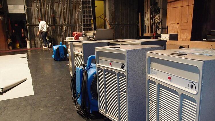 Derweil laufen auf der Bühne bereits ein Dutzend Kondensationstrockner, die am Nachmittag eilends von einer Spezialfirma aufgestellt wurden. "Die Trockenlegung des Hauses hat Priorität", sagt Busse.