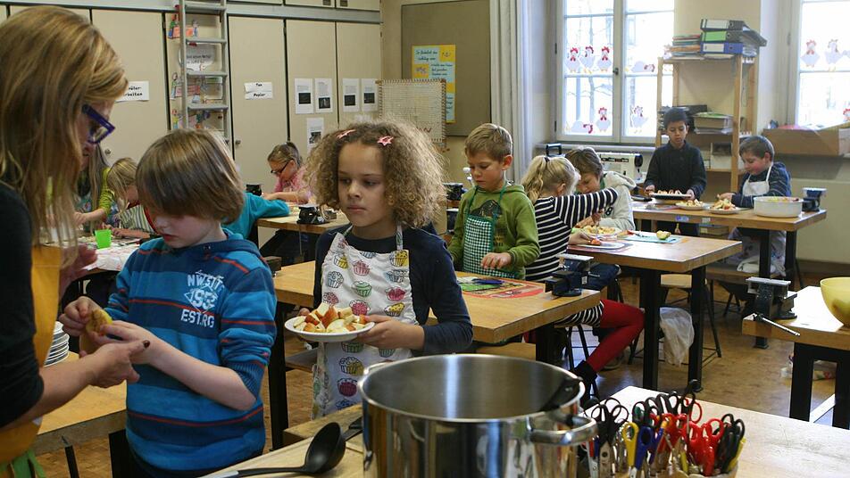 Als sie vor knapp zwei Jahren Barbara Hannweber ihr Projekt vorstellte, rannte sie offene Türen ein. "Ich finde das toll und war sofort dabei", sagt die Rektorin und rührt weiter die geschnittenen Äpfel in Zitronensaft.