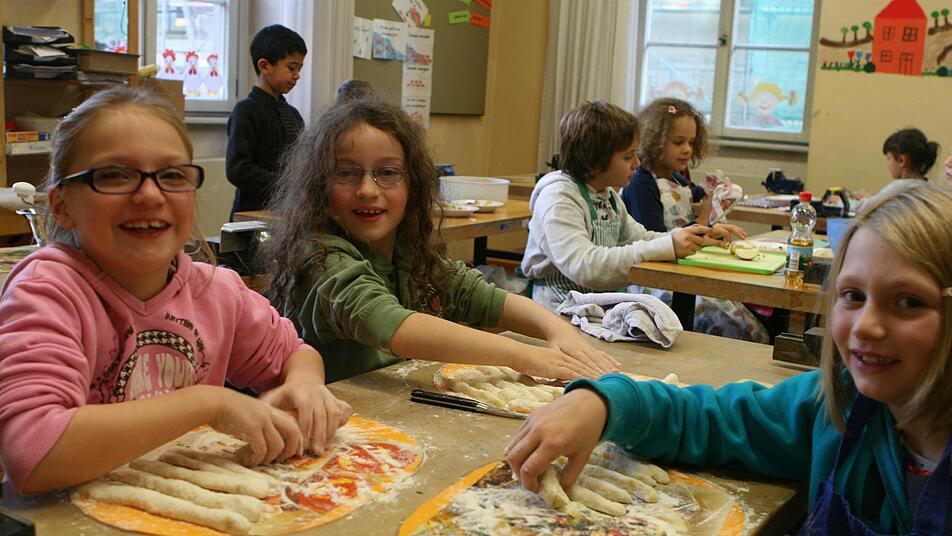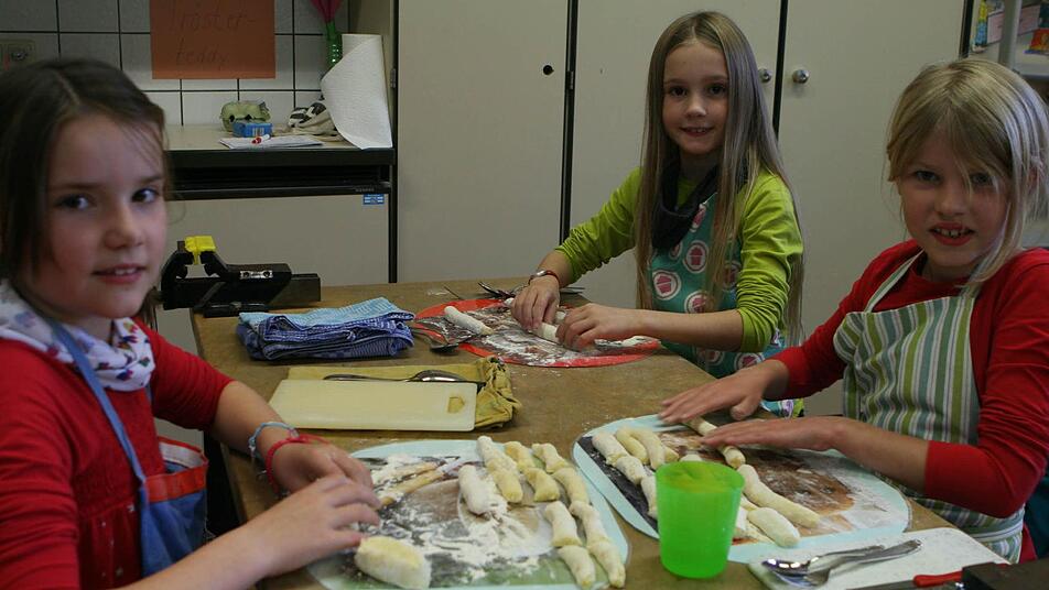 Mehl an den Händen, eine Schürze um die Hüfte - so steht Kerstin Haas im Werkraum der Lutherschule und knetet eifrig ihren Kartoffelnudel-Teig. Nichts erinnert an die elegante Chefin des Modegeschäft "Auftritt". Um sie herum wuseln 20 Grundschüler ebenfalls im Küchenschürzenlook. Rektorin Barbara Hannweber erläutert derweil den Mechanismus der "flotten Lotte", die wenig später ihren großen Auftritt haben wird.