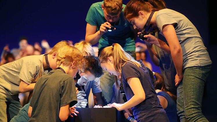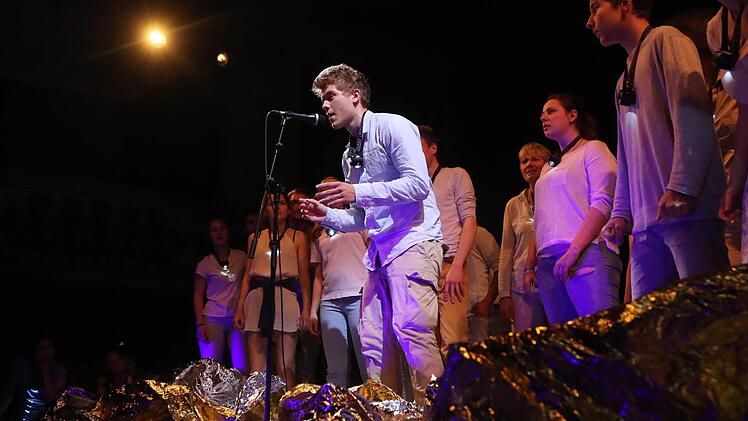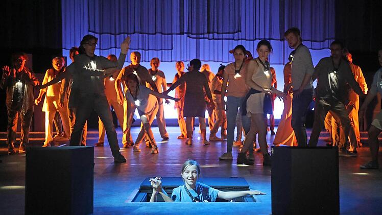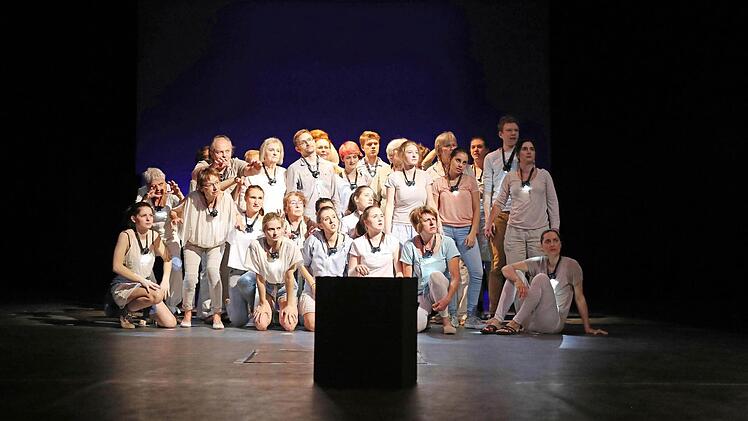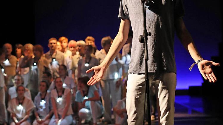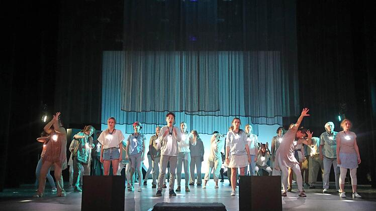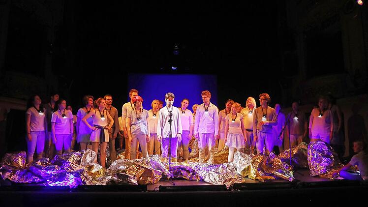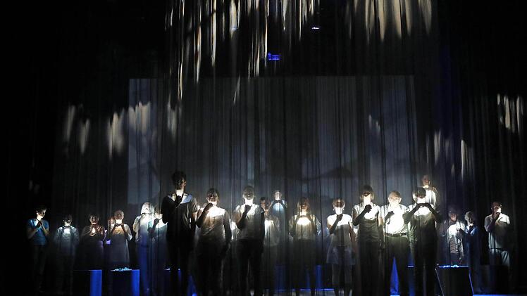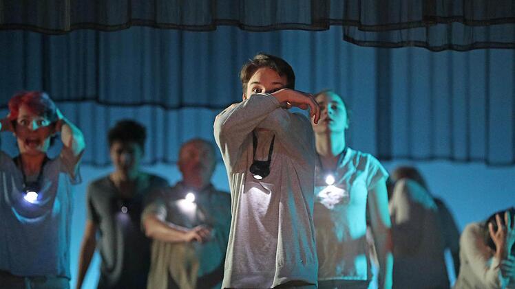 Das Wort hat unter der sensiblen Regie von Theaterpädagogin Luca Pauer seine Macht - oftmals auch noch lautmalerisch inszeniert. Doch alles ist ausgerichtet auf Körperhaftigkeit, auf Bewegung. Denn unsere Körper sind Träger des Geistes. Und in dem von Luca Pauer mit choreografischer Unterstützung von Sebastian Eilers entwickelten, gestisch einfallsreichen Bewegungs-, ja Tanztheater entstehen wunderbare Theaterbilder, gerade auch in der Frische der Nichtprofessionalität der Darsteller. Das ist die Kunst eines solchen Projektes. Für das Moksha Lehr in Zusammenarbeit mit dem Studiengang Innenarchitektur der Hochschule Coburg den adäquaten, aus dem Dunkel leuchtenden Bühnenraum geschaffen hat.