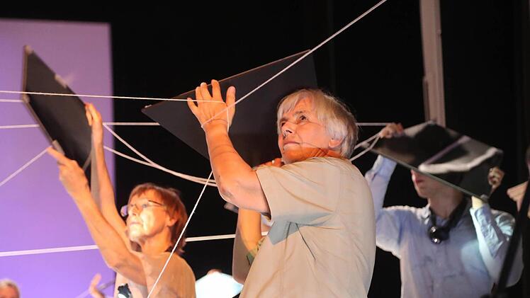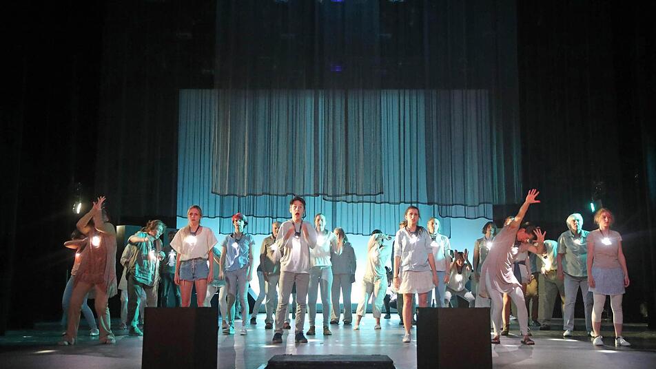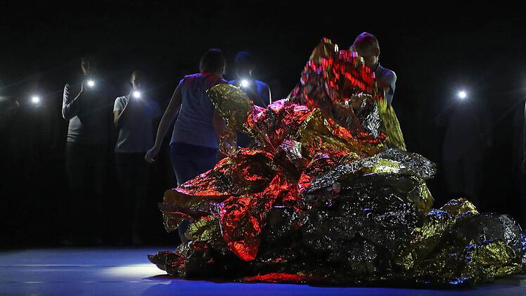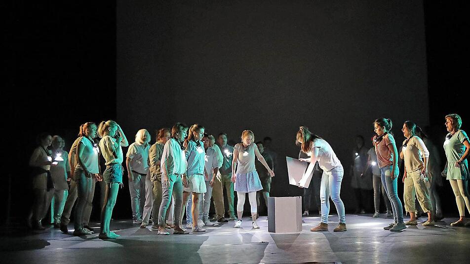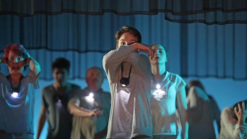 Die mag auch den Zuschauern in die Seele kriechen angesichts dieser Theaterbilder voller Intensität und Emotion, voller Ästhetik und Stimmung, voller Spannung - die ein großer Trupp von Laiendarstellern auf der großen Bühne des Landestheaters erstehen lässt. Und wenn es nur die Erinnerung an die Angst ist, welche die Kinder vor dem Gang in den Keller packt - das "generationenübergreifende TanzTheater-Projekt für Coburger Bürger", das Luca Pauer diesmal verwirklicht hat, nahm am Samstag 60 Minuten lang gefangen im geheimnisvollen Schein der Lämpchen und Farben, im treibenden Rhythmus elektronischer Musik und vor allem in der darstellerischen Kraft, zu der die etwa 50 Mitwirkenden zwischen fünf und 75 Jahren gefunden haben.