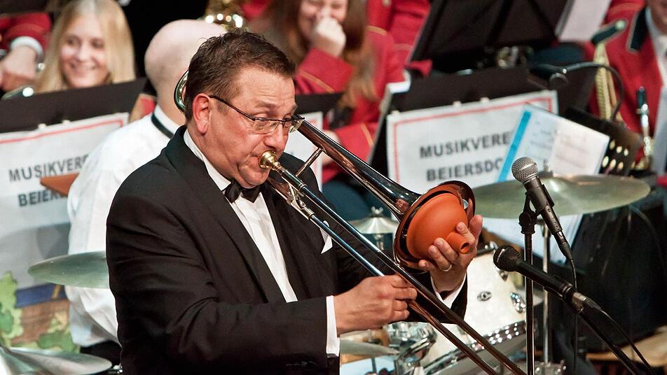 Den Abschluss des Abends bildet dann ein klingendes Experiment: Was passiert, wenn ein groß besetztes Blasorchester wie der Musikverein Beiersdorf und ein Jazz-Septett gemeinsam musizieren? Das Publikum im Kongresshaus erlebt zunächst einen ebenso kontrastreichen wie lebendigen Dialog bei einem Marsch von John Philipp Sousa ("The High Scholl Cadets"). Der "Coburger Marsch", den der Komponist Michael Haydn einst dem Prinzen Friedrich Josias von Sachsen-Coburg-Saalfeld widmete, erklingt dann in verblüffend neuer Form.