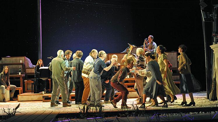 Landestheater Coburg "Wie im Himmel", Schauspiel mit Musik nach dem Film von Kay Pollak. Dramatisierung und Inszenierung Matthias Straub. Bühnenbild Till Kuhnert. Kostüme Carola Volles. Choreinstudierung Antoinetta Bafas. Dramaturgie Denise Burkhardt.