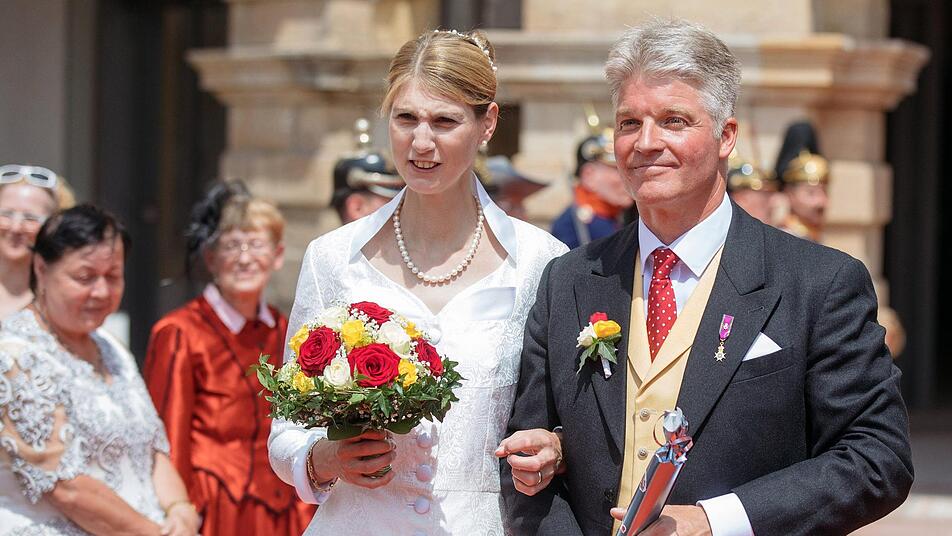 Bei Kaiserwetter erlebte die Stadt Gotha am Donnerstag eine fürstliche Hochzeit. Auch zahlreiche Schaulustige waren zum Schloss Friedenstein gekommen.