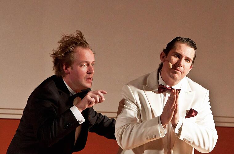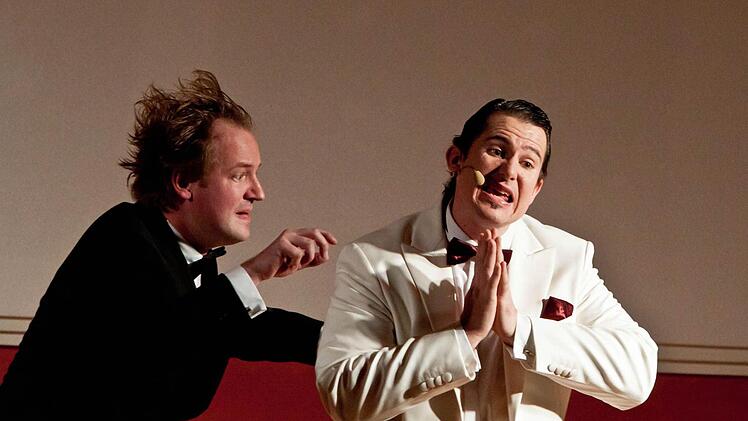 Zum Auftakt ein Heimspiel. Für die Premiere seines neuen Programms "Hüften aus Gold" hat sich das Duo "Streckenbach & Köhler" das Coburger "Haus Contakt" ausgewählt. Schon mit dem Titellied ziehen André Streckenbach und Alexander Köhler das Publikum im ausverkauften Saal entschlossen auf ihre Seite. Die selbstironischen Seitenhiebe auf den Schlankheitswahn bescheren dem Duo gleich die ersten deutlichen Ausschläge auf der Heiterkeitsskala.