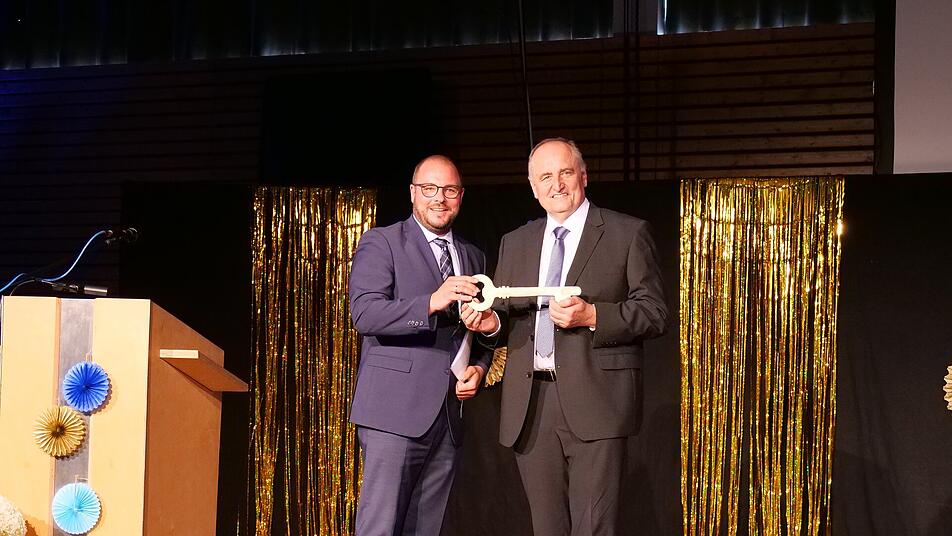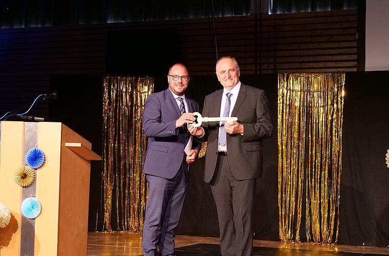 Dank sagte der Landrat dem scheidenden Schulleiter auch, weil dieser stets darauf geachtet habe, dass das Geben und Nehmen im Verhältnis zwischen Schule und Sachaufwandsträger ausgewogen war. Mit dem Eintritt in den Ruhestand könne sich Klaus Reisenweber sicher sein, dass "seine" CO II gut aufgestellt, gut ausgestattet und fit für die Zukunft ist. "Ich danke Ihnen für das, was Sie in den zurückliegenden fast 25 Jahren für diese Schule, für Ihr Lehrerkollegium, für Ihre Schüler und den Landkreis getan haben", schloss der Landrat und überreichte als Erinnerung unter anderem einen symbolischen Schlüssel mit der Aufschrift "Für den Baumeister der CO II".