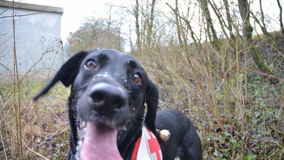 Zuerst ist es ein entferntes Glöckchen. Dann wird es rasch lauter. Krachende Äste, Hecheln - dann ist Cleo da. Die Labradorhündin schnüffelt, untersucht den Menschen da am Boden. Dann ist sie sicher, dass sie gefunden hat, was sie sucht. Sie bellt. Das tut sie so lange, bis Elke Kunz da ist. Die beiden sind ein Gespann der Rettungshundestaffel beim BRK in Coburg. Mit der erfolgreichen Suche endet der Trainingstag für sie und einige ihrer Mitstreiter.