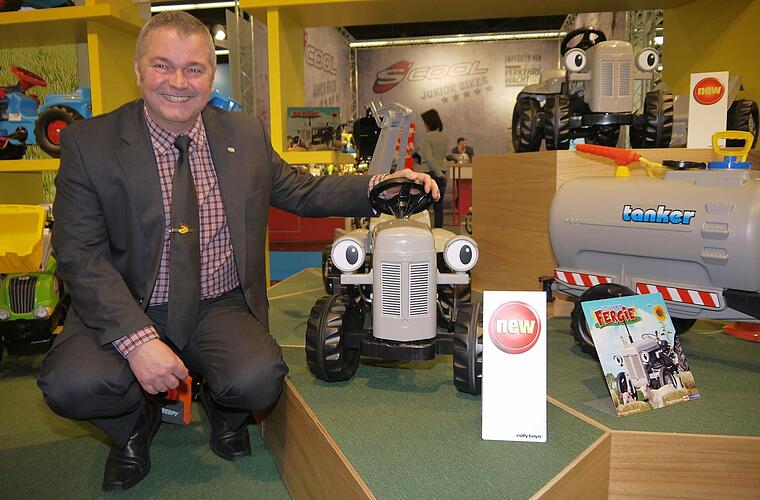 "rolly toys" aus Neustadt zum Beispiel "völlig vom Tisch". Das sagte Exportleiter Rainer Knauer im Gespräch mit Schmitz. Mehr noch: "rolly toys" sieht China nicht als Produktionsland, sondern als Verkaufsmarkt. "100 Millionen Chinesen", rechnete das "rolly-toys"-Urgestein Knauer (39 Jahre Messe-Erfahrung), "können sich unsere Artikel leisten." Auf die Frage nach dem interessantesten Markt überraschte Knauer mit einer Antwort, wie aus der Pistole geschossen: Irland. Dreieinhalb Kinder habe dort die Durchschnittsfamilie - und ein Herz für Kinder. Und, ergänzte der Exportleiter: "Sie kaufen alles, was grün ist." Grün sind bei "rolly toys" die seit 1978 in Lizenz für den Traktorenhersteller John Deere gefertigten Tretautos.