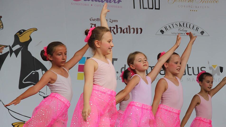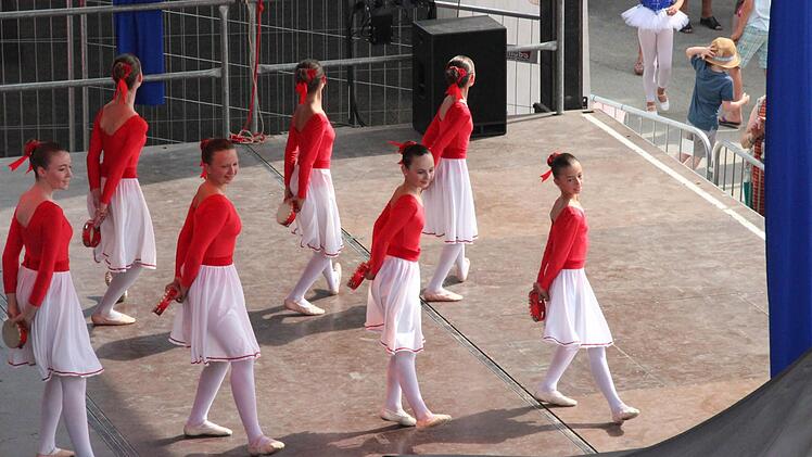 Die Ballettschule Spreitzer-Breyer hatte gleich mehrere Formationen losgeschickt, genauso wie das Tanzstudio von Ramona und Dominique Scholz und das Move & Dance Center Coburg. Bis in den Abend wechselten sich Turner und Tänzer, Akrobaten und Jongleure auf der Showbühne ab. Abkühlung? Die gab's, zumindest bis Redaktionsschluss, nur von innen.