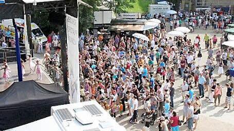 Wenn die Coburger Tanzgruppen am Sonntagnachmittag auf der Showbühne vom Schlossplatzfest stehen, wird's vor der Bühne voll - aber bei 30 Grad auch nur dort.
