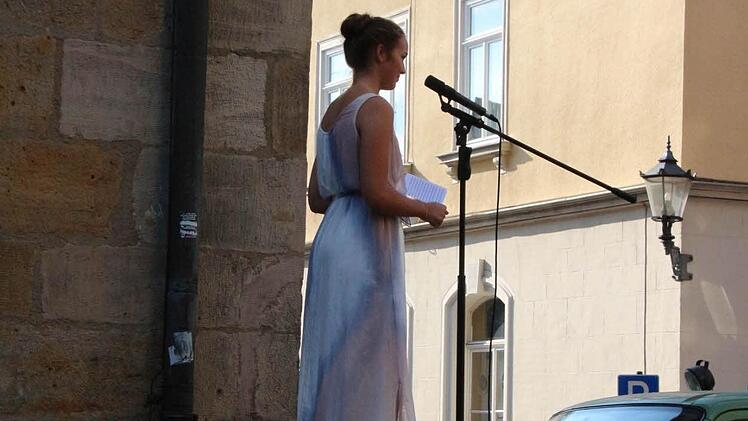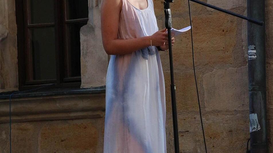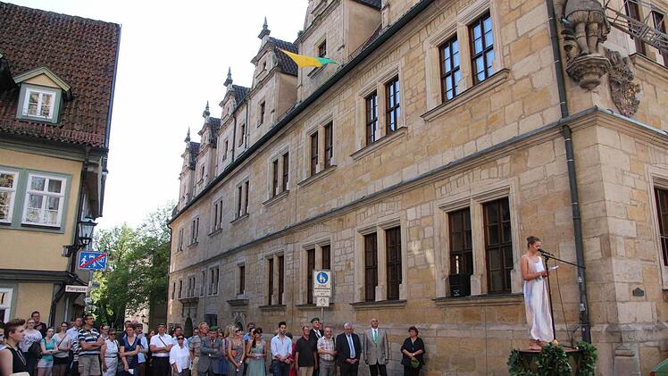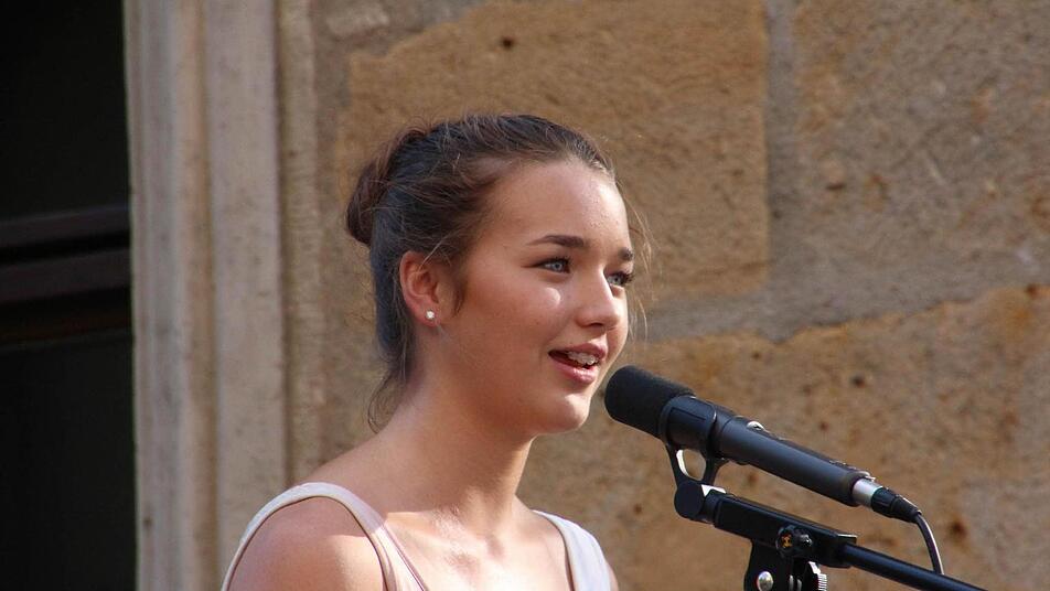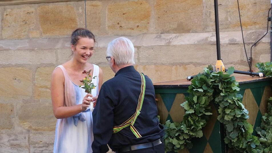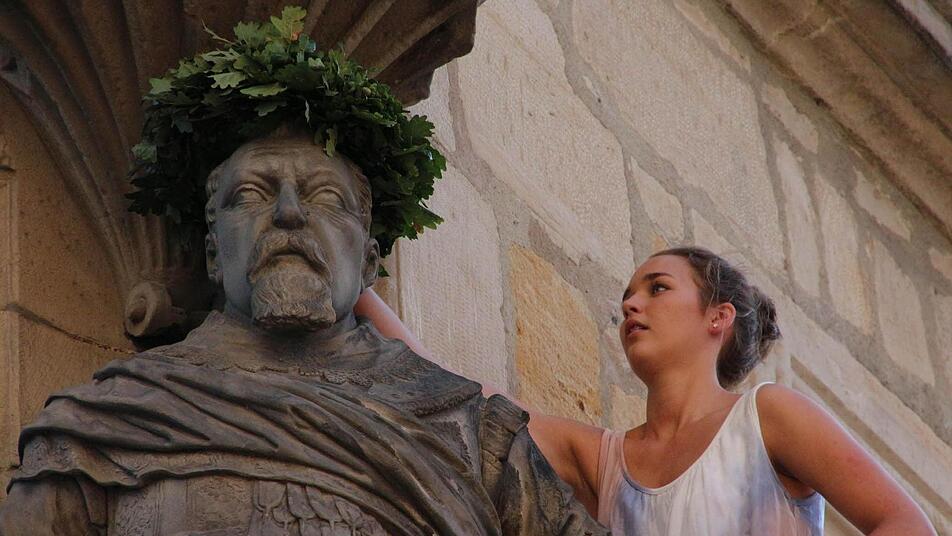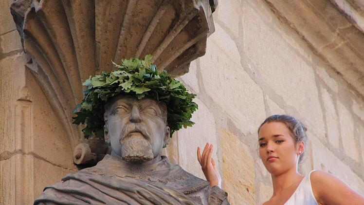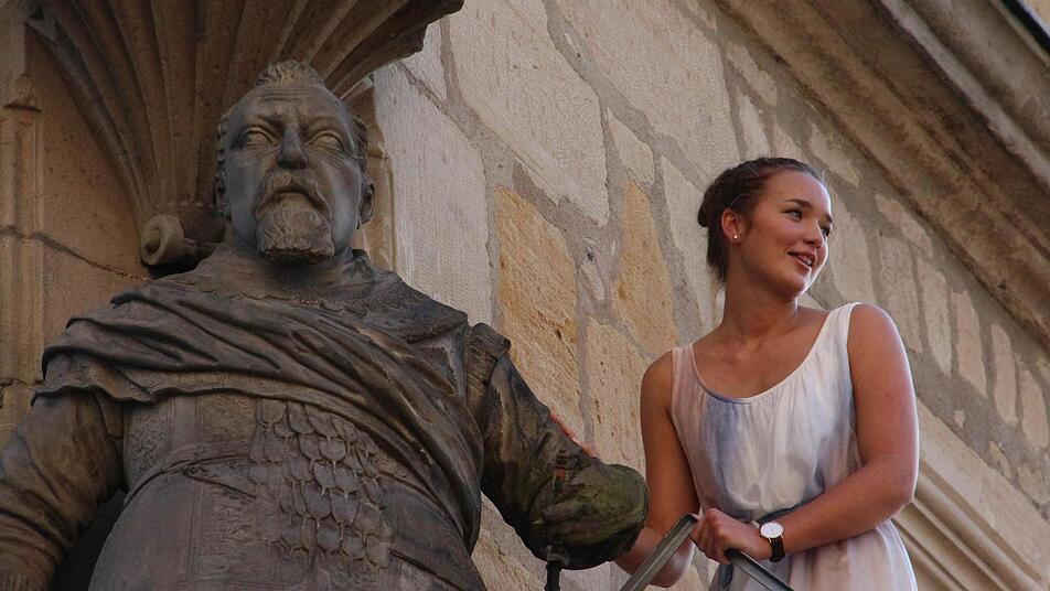 Martha Frittrang hatten die Schüler der Q11 in diesem Jahr für diese Aufgabe gewählt. Denn mit der Bekränzung der Statue ehren die Casimirianer seit dem 19. Jahrhundert Herzog Johann Casimir, der die Schule am 3. Juli 1605 gründete.
