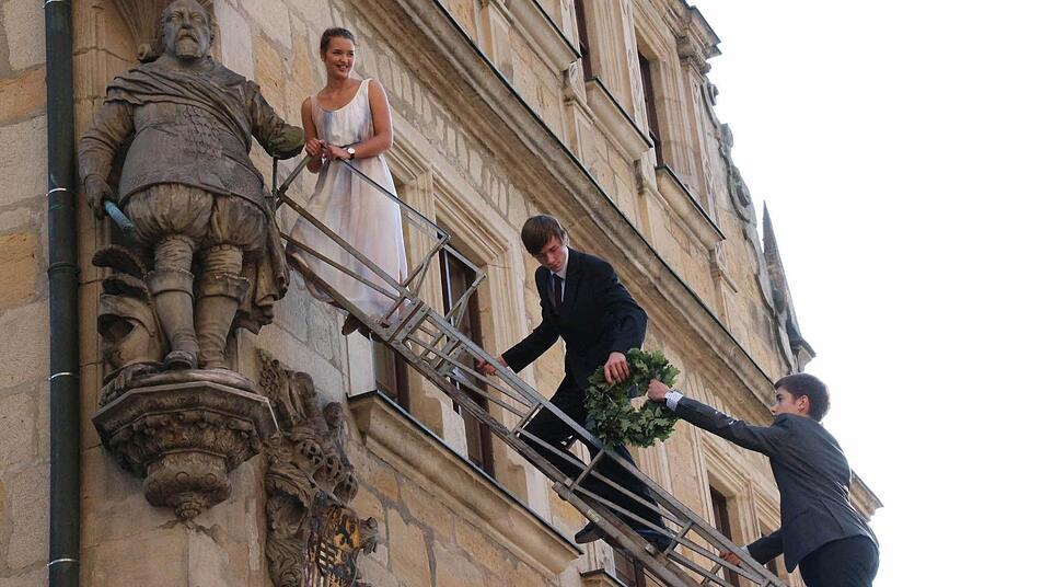Auf eine Leiter steigen, zwei große Eichenlaubkränze an einer Statue befestigen, dazu drei Gläser Bier trinken und lateinisch reden: Wer aufs Coburger Gymnasium Casimirianum geht, könnte sich eines Tages dieser Prüfung der besonderen Art stellen müssen.