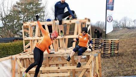 Mitten im Wohngebiet startet die zwei Kilometer lange Runde, geht querfeldein durch und rund um ein Wäldchen mit Klettergerüst, Reifenstation und Kriechhindernissen. Zusammengezimmerte Palettengerüste und -tunnel müssen auf einem noch freien Baugrundstück überwunden werden, bevor es zum Abschluss der ersten Runde quer durch den noch vereisten Gartenteich bei Familie Lulei geht. Nass, verdreckt, aber glücklich geht's dann weiter und weiter.