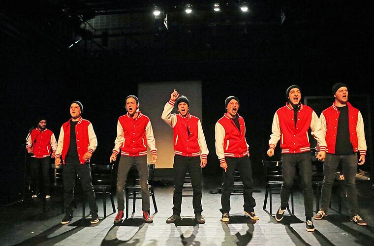 Beeindruckend, mit welcher Intensität Paulick und Hübner diese Figur zum Bühnenleben erwecken. Beeindruckend, wie konzentriert und entschlossen sich Kevin Pojani, Luca Schenk, Ayman Shanana, Christof Stier und Dominik Tippelt einfügen in dieses Konzept und der Figur des Jona zusätzliche Facetten verleihen.