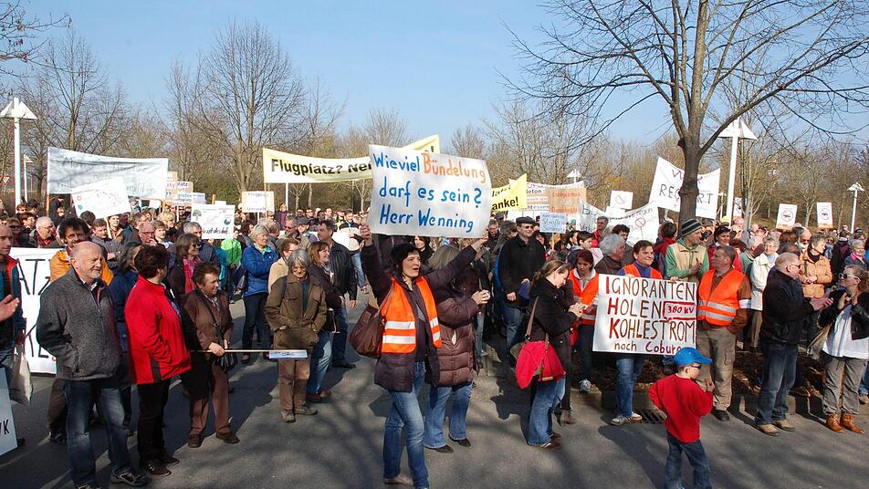 Wut über die Stromtrasse "Die geplanten Gleichstromleitungen sind Wünsche der Netzbetreiber. Sie verdienen ihr Geld damit. Aber es wurde weder eine quantitative Begründung dafür geliefert noch wurde nachgewiesen, dass diese Trassen wirklich für die Energiewende gebraucht werden", sagte Anette Martin als Sprecherin der Initiativen gegen die 380-kV-Leitung von der Küste durch das Coburger Land.Nach wie vor sind die Gegner überzeugt, dass dezentrale Energieerzeugung aus nachwachsenden Rohstoffen, Windkraft und Solarenergie, die Leitung überflüssig machen kann. Über diese solle vielmehr "dreckiger" Kohlestrom oder Atomstrom aus Russland "gehandelt" werden.