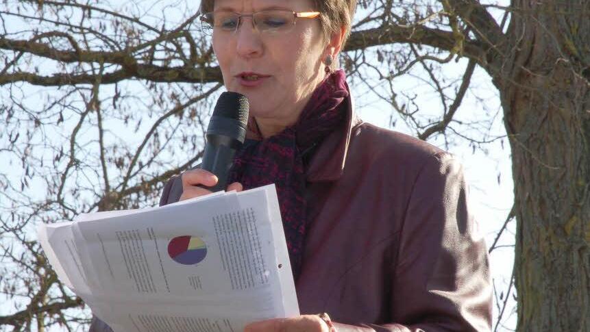 Waltraud Deutschmann zitierte aus ihrem Einwand gegen die Trasse im Zuge des Planfeststellungsverfahrens. Damit gab sie eindringlich wieder, was Bürger bewegt, die wie sie aufs Land gezogen sind, um saubere Umwelt zu suchen und nun feststellen müssen, dass diese verbaut wird.