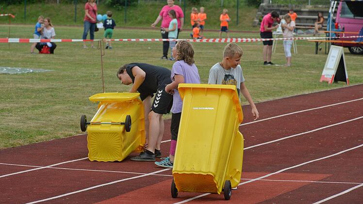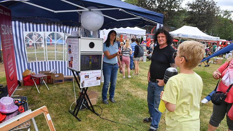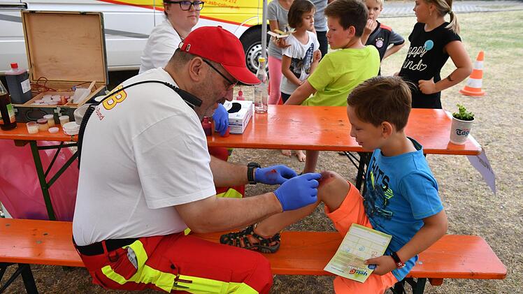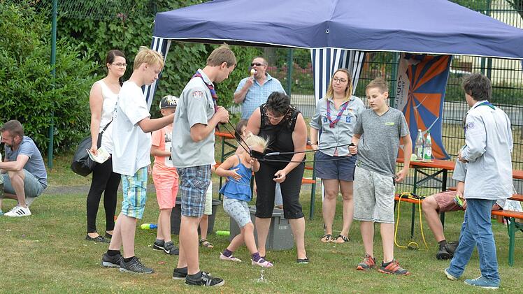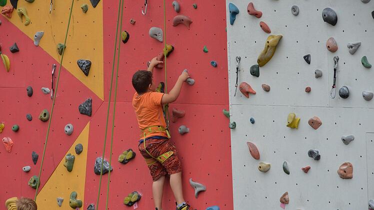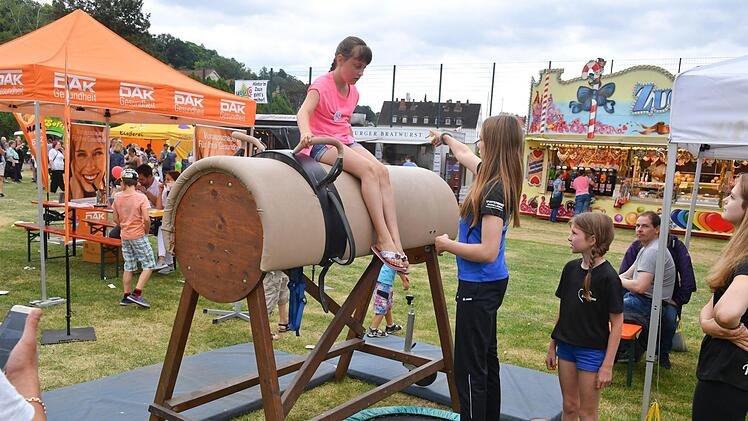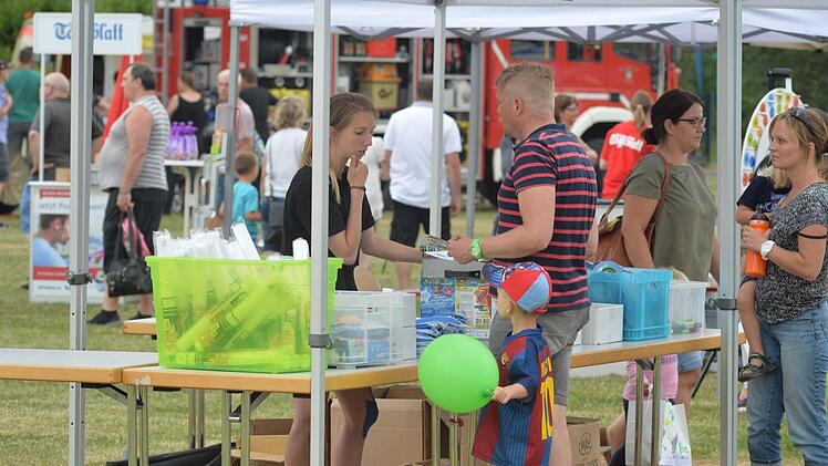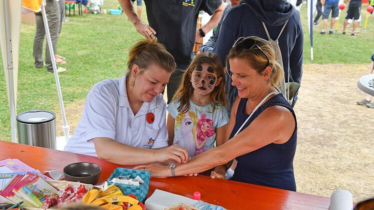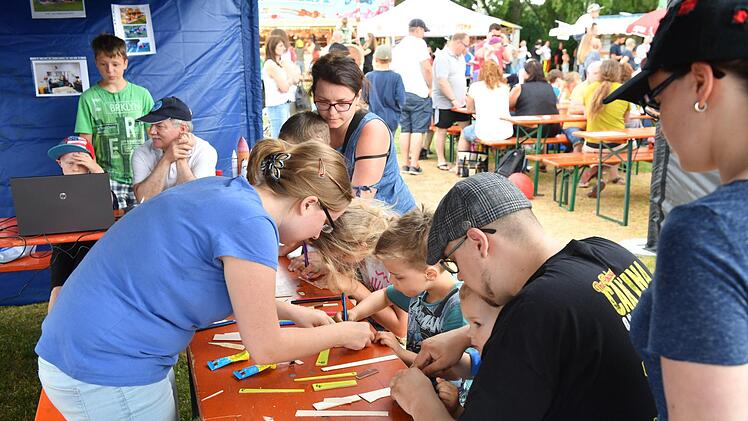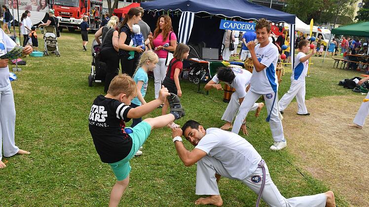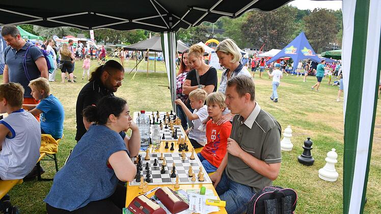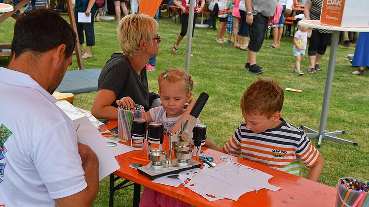 Ob Riesenhüfburg oder Hula Hoop-Reifen, Becher Stapeln oder Schach spielen, Traktor fahren oder Feuer löschen, ob Wunden schminken oder Schmetterlinge ins Gesicht malen, im Wasserball herumrollen oder Balance halten beim Surfen, die Besucher des Familientages kommen alle auf ihre Kosten. "Die Stimmung ist toll, das Wetter optimal", resümiert Christine Völker vom Stadtjugendring. Es freut sie, dass vor allem der Kleinkindbereich so gut angenommen wird. "Wir haben die Anregung aus dem vergangenen Jahr gerne aufgegriffen", sagt sie und schaut in Richtung Kletterwand. Davor ist der abgetrennte Bereich für die ganz Kleinen. Klara ist erst eineinhalb, aber es macht ihr offensichtlich riesig Spaß mit ihrem Papa in dem aufblasbaren Spielbecken herumzutollen.