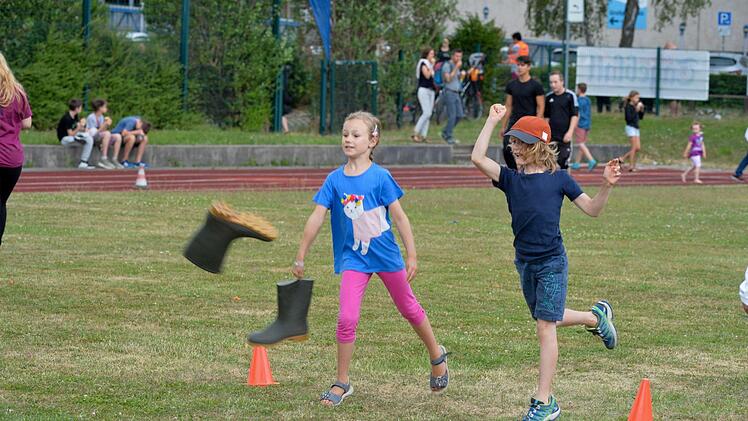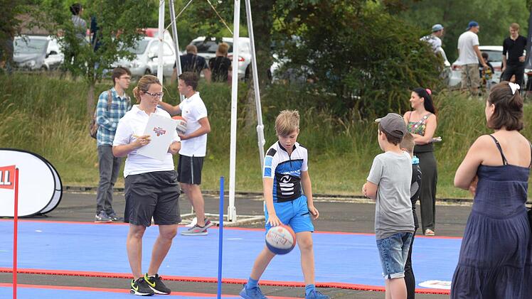 Ihre großen Brüder, Moritz (7) und Bastian (10) haben sich derweil bei der "kinder+Sport Basketball Academy" von Brose Bamberg angemeldet. Sie erleben Basketball in all seinen Facetten und lernen das orangefarbene Leder an den Stationen Werfen, Korbleger, Dribbling, Passen und Koordination kennen. Unter dem Motto "Trainieren wie die Profis" können sich alle Teilnehmer an den Aufgaben der Academy versuchen und sich Tipps und Tricks von den Jugendtrainern von Brose Bamberg und dem BBC Coburg abholen. Gemeinsam betreuen die Coaches den Parcours und üben mit dem Nachwuchs. Voller stolz präsentieren die Brüder ihrer kleinen Schwester ihr neues Baskettball-T-Shirt, das sie bekommen haben. Und weiter geht's, rüber aufs Gelände vom TV 48. Dort wird Handball gespielt, Wasserbomben fliegen durch die Luft und eine riesige Hüpfburg wartet schon auf die beiden.