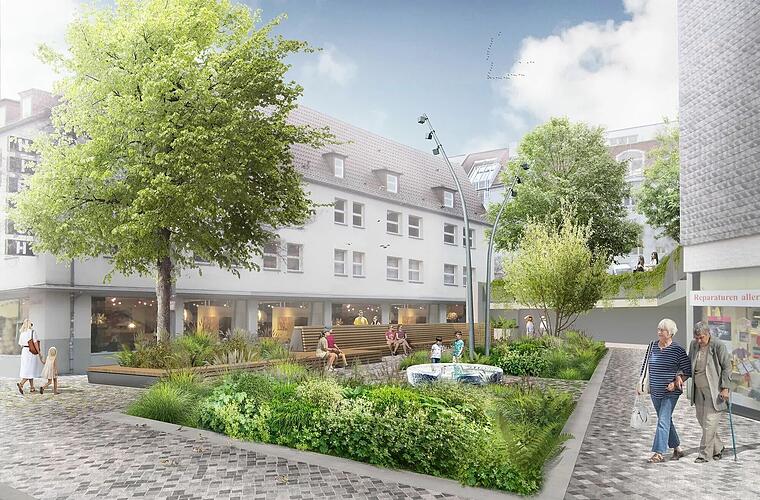 Auf der Fläche sollen Bäume und Sträucher für Schatten sorgen, zudem sei der Boden entsiegelt. Das sorge dafür, dass der Platz an heißen Sommertagen trotzdem gekühlt bleibe, was sich positiv auf das Stadtklima auswirke, erklärt die Stadt.
