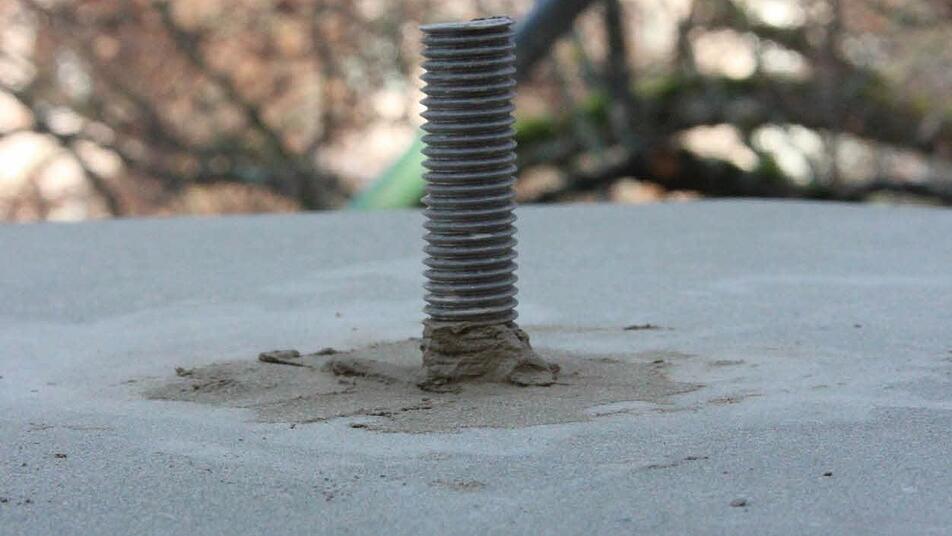 Nun müssen nur noch die Unterlegkeile entfernt werden, dann kann Christoph Klesse darangehen, den Mörtel aufzutragen, um den Adler fest mit seinem Sockel zu verbinden.