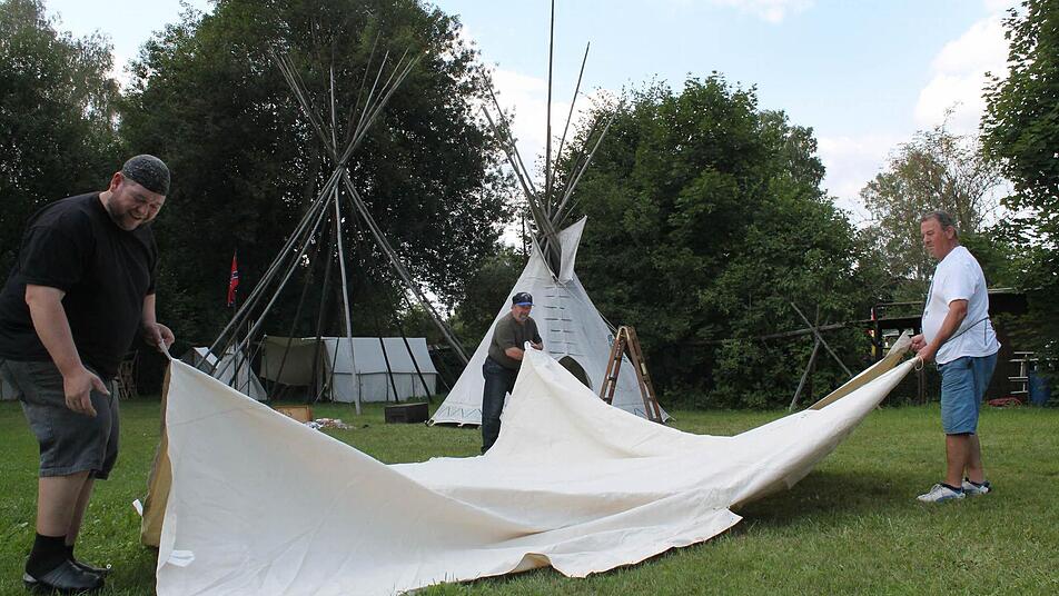 Für genügend Platz auch außerhalb der Tipis baut das BRK vier große Zelte, mit zehn mal sechs Metern auf. Am Mittwoch wurde noch gehämmert und aufgebaut. Ab heute wird getanzt und gefeiert.