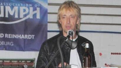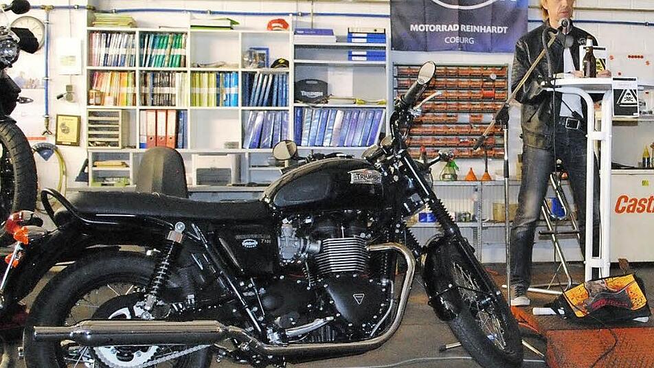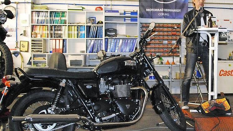 Der frühere Coburger Sicherheitschef Volkert Backert hat seinen dritten Coburg-Krimi vorgelegt. "Hardrock" wurde effektvoll in einer Coburger Motorrad-Werkstatt präsentiert.